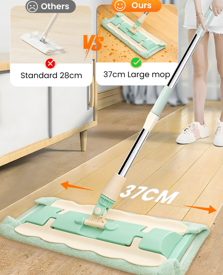 The flat mop design allows you to reach tight corners and hard-to-reach areas with ease, making it a great choice for both home and commercial use. The ergonomic handle is made of stainless steel, making it durable and long-lasting.