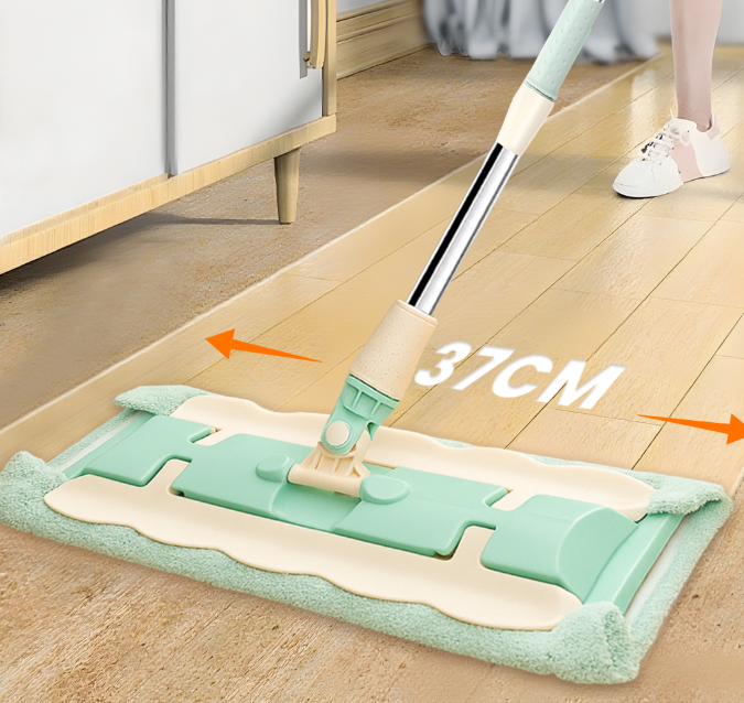 CONVENIENT STEER - Features 360 degree maneuverable swivel head allows you mop around the stairs, furniture and table legs flexibly. 37*15cm mop pad with improved fabric clip-on design covers more area while cleaning, makes cleaning floor fast and efficient. It' also suitable for commercial and industrial applications.