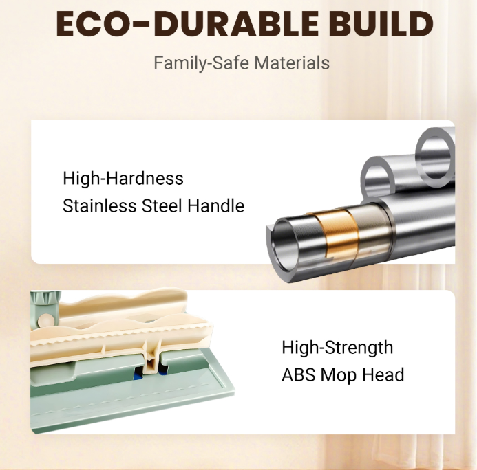 DOUBLE LOCK TELESCOPIC SYSTEM - Stainless steel adjustable handle can be extended and locked to any available position, which offers a comfortable pickup and hold for different person, makes cleaning the floor without having to bend down. Heavy duty stainless steel handle with double lock system is designed to hold the desired position firmly in its place, so you don't have to worry the pole will slide down while mopping.