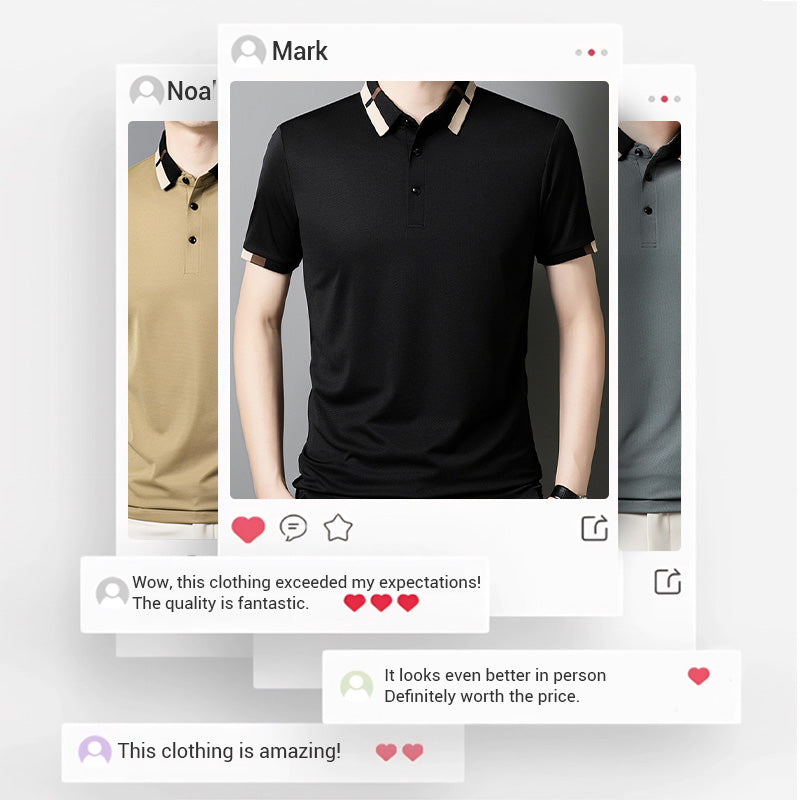 🔥Clearance Sale-50% off👕Men's Stretch Ice Silk Short Sleeve Lapel T-shirt
