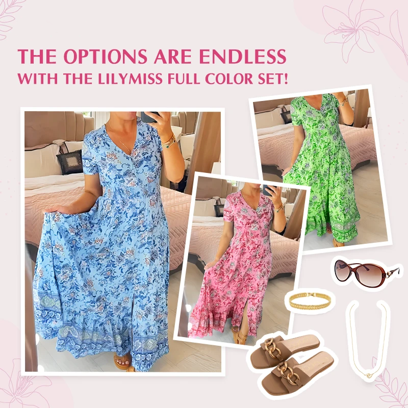 The dress offers endless styling options with the FemiBloom full-color set. Pair it with your favorite handbags, leather slippers, strappy sandals, and gold accessories to complete your look, whether you're going for a boho-chic, elegant, or casual style.