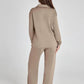 The sweat sets designed with a sporty polo collar, V-neck and high-low hem,high waisted pants with Drawstring,drawcord for a custom fit with a loose fit that reveals wide legs,High-low hem offers extra coverage in back, 4-way stretch for easy movement.