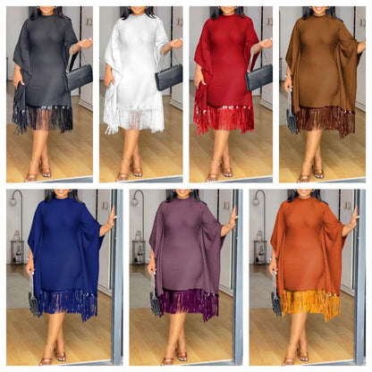 Package Includes:1*Women's Plus Size Sequin Fringe Midi Dress with Batwing Sleeves