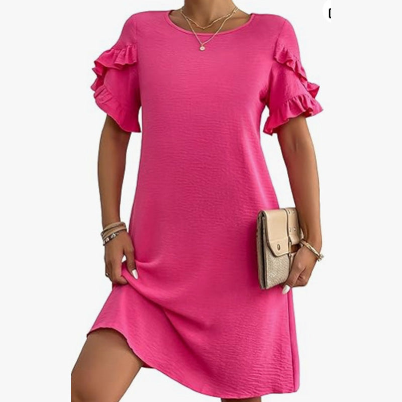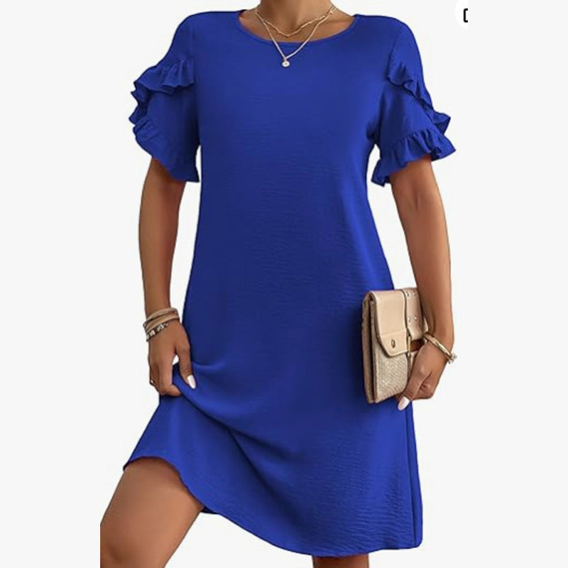 Package Includes: 1 * Women’s Solid A-Line Ruffled Short Sleeves Dress